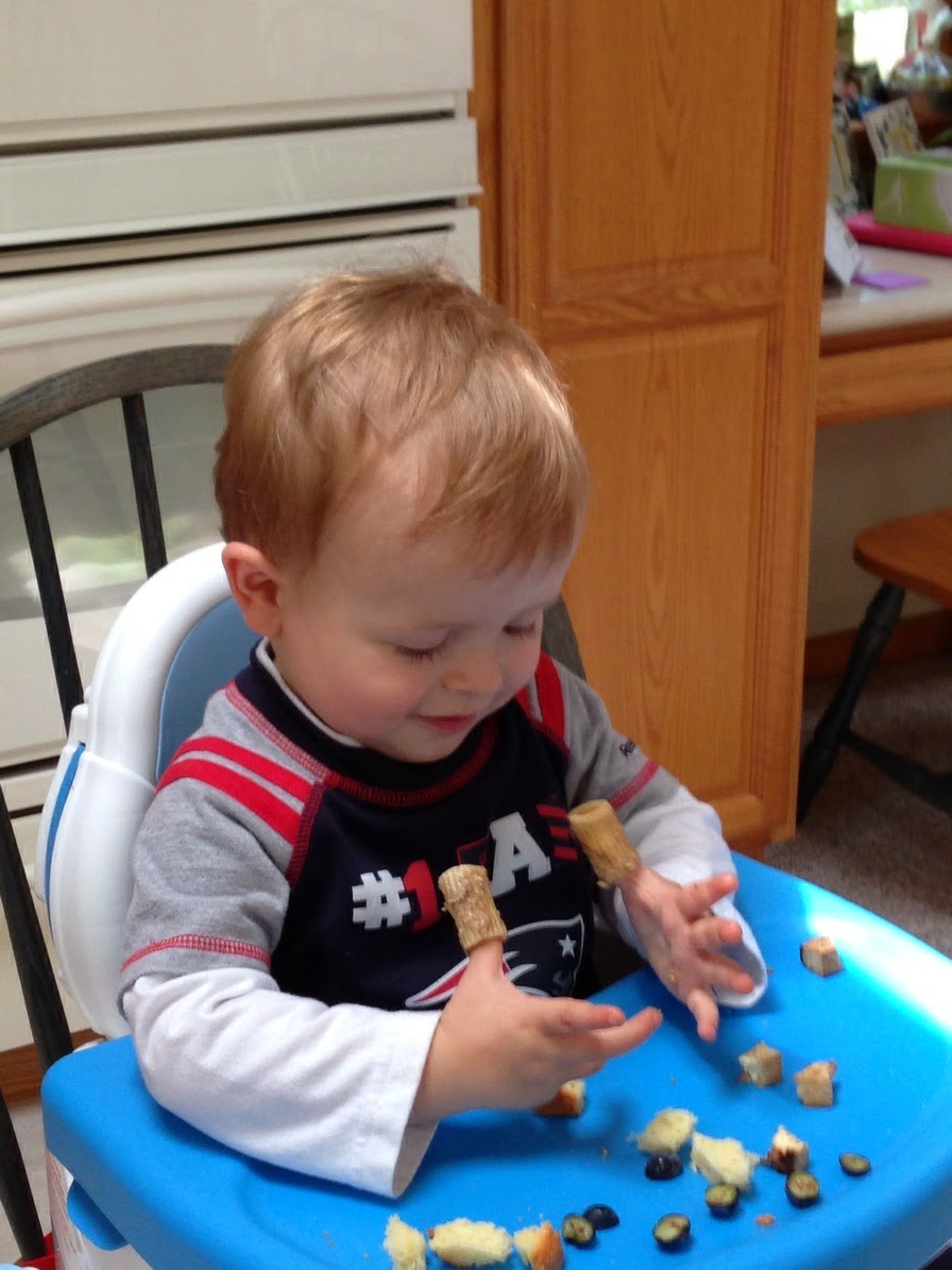 Wednesday I worked again. Somehow I had dropped Caleb's socks when I was putting his clothes in the bag I send to Grammy's house, so he didn't have any socks all day. Luckily it wasn't a cold day! He did take a terrible nap however, so I wonder if it was because he didn't have socks...